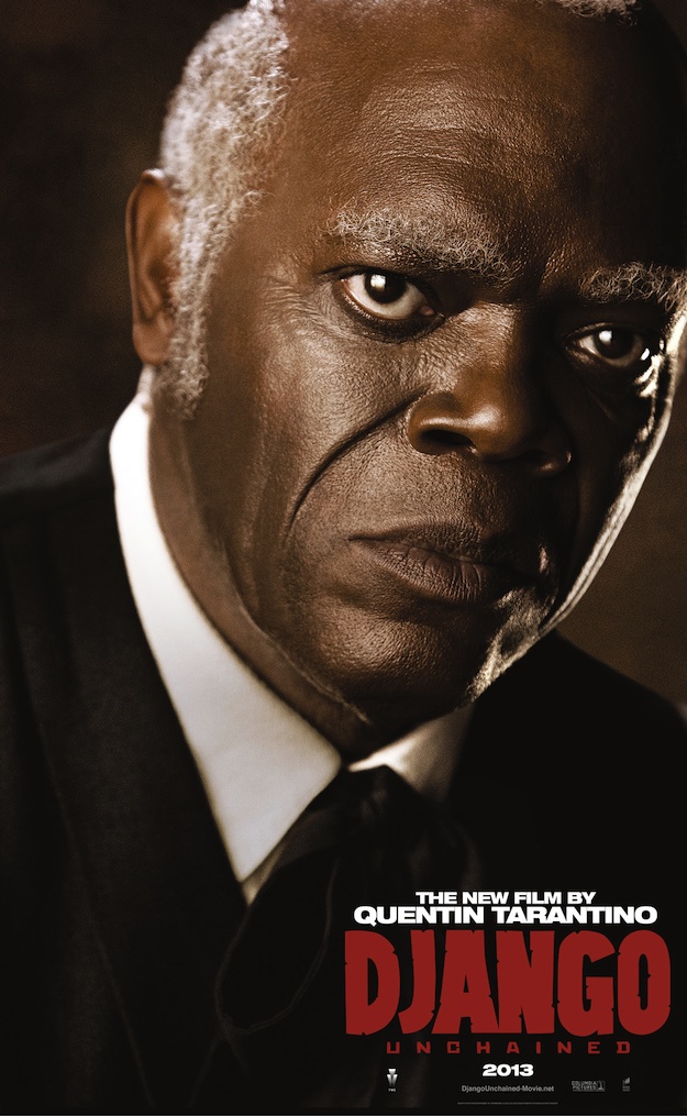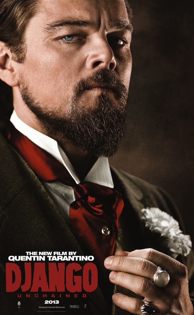 Jamie Foxx dans le rôle titre de l’ancien esclave (Django), Christoph Waltz dans celui du dentiste allemand reconverti en chasseur de primes (Dr. King Schultz), Samuel L. Jackson dans le rôle de Stephen et Leonardo DiCaprio dans celui du vilain propriétaire terrien (Calvin Candie) qui retient la belle Broomhilda qui n’est autre que la femme de Django interprétée par Kerry Washington; voici cinq superbes nouvelle affiches pour tout autant de personnages clés du film «Django Unchained».