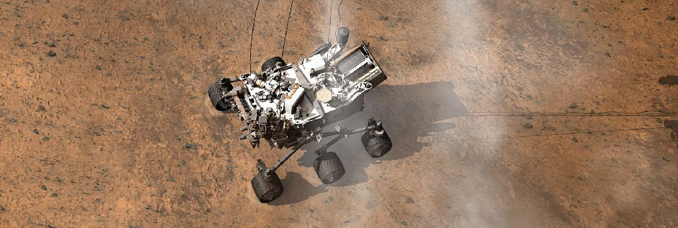 Envoyé dans le cadre d’une mission d’exploration de la planète rouge, ce laboratoire robotisé mobile pesant près d’une tonne s’est posé aux pieds du mont Sharp d’ou il a envoyé la photo ci-contre quelques minutes à peine après son atterrissage. Expédié sur place dans le but de déterminer si l’environnement martien a par le passé rempli ou non les conditions nécessaires à l’apparition de toute forme de vie à commencer par d’éventuelles traces d’eau sous la forme liquide, Curiosity explorera la surface de la planète durant les deux prochaines années.