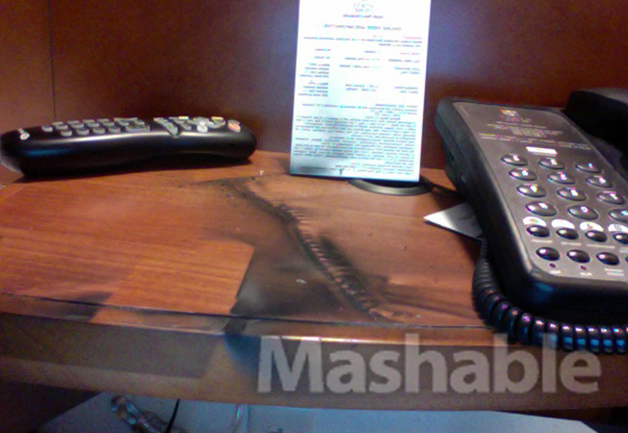 Une lectrice de Mashable a en effet eu la mauvaise surprise d’être réveillée en pleine nuit par le bruit et l’insupportable odeur dégagée par la combustion de son iPhone 4 acheté un an auparavant. Le Smartphone en charge sur le bureau de sa chambre d’hotel aurait selon cette femme pris feu sans raison apparentes et aura au passage laissé d’importantes traces de son suicide sur le meuble.