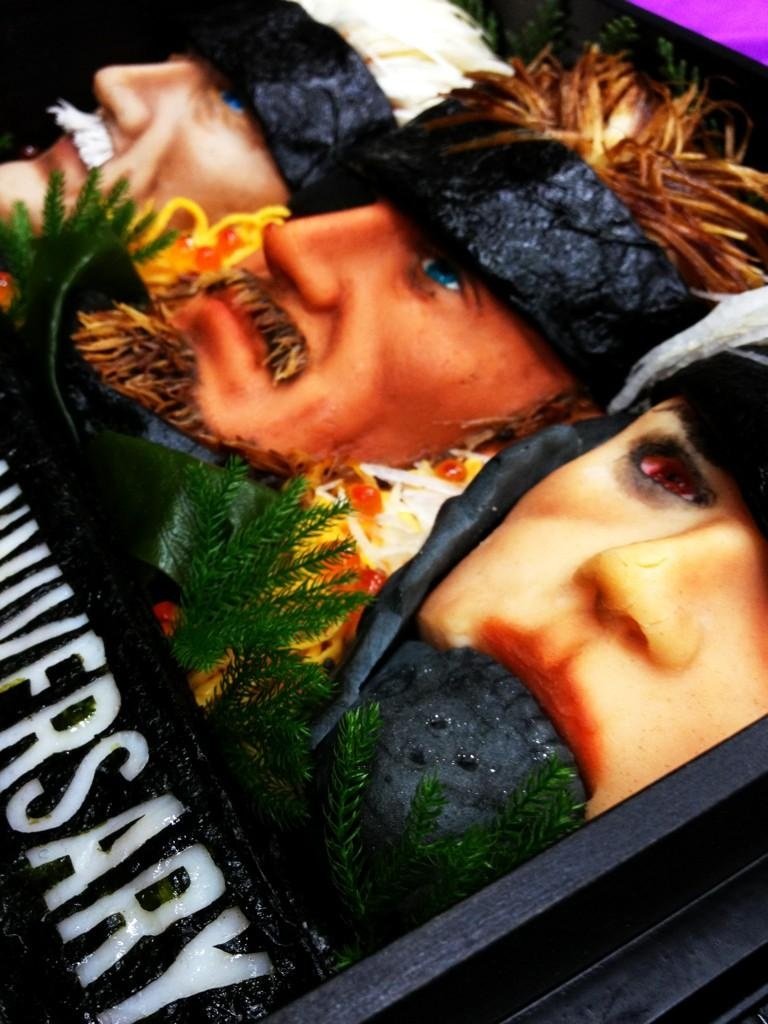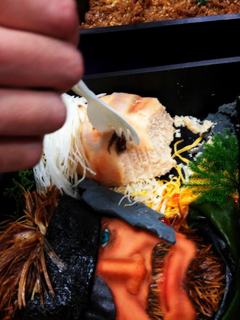 Non, vous ne rêvez pas, ce sont bien les têtes de Snake, Big Boss et Raiden qui ont été reproduites à partir de purée de pommes de terre, d’algues noires, d’oignons, d’œufs de cailles et d’autres ingrédients tout à fait comestibles !