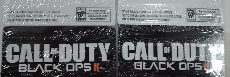 Venant appuyer une rumeur née en mars dernier suite à la publication d’une fiche produit découverte sur le site espagnol de la FNAC, les cartes de réservations photographiées ci-dessous nous confirment à première vue que «Black Ops 2» devrait débarquer sur Xbox 360 et PS3 le 13 novembre prochain. Cette date coïncide donc parfaitement avec les précédentes estimations mais comme le rappel un petit texte lisible au bas de ces cartes, cette date est susceptible d’être modifiée avec le temps…