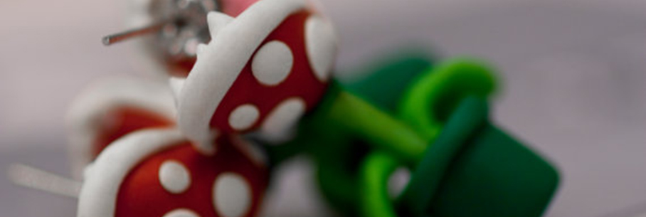 Crée par LizGlizz, cette sublime paire de boucles d’oreilles revêtant les traits des plantes carnivores «Piranha» issues de l’univers de la franchise vidéoludique «Super Mario Bros.» me ferait presque regretter de ne pas être une fille et si c’était le cas je m’écrierais incontestablement WAAANT!!! ^^