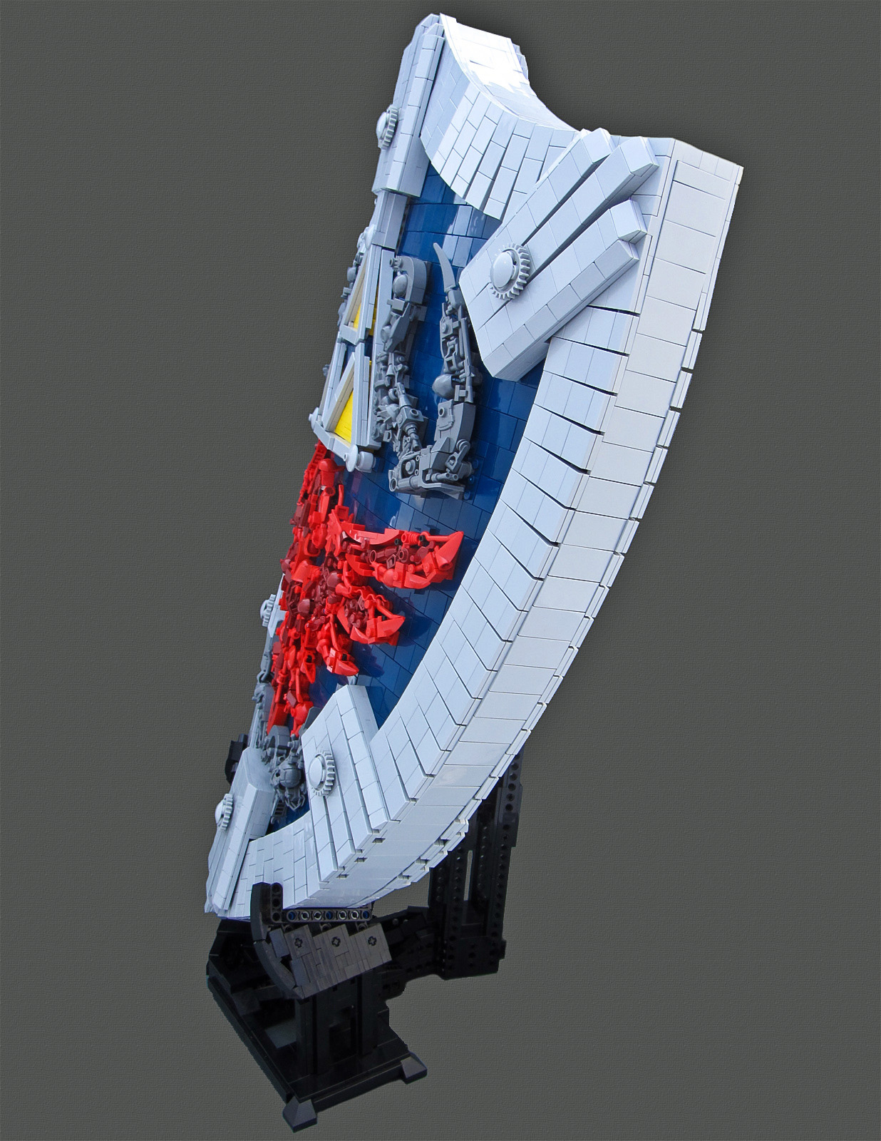 Nouvelle création signée Remi Gagne aka Bolt of Blue, voici une incroyable réplique du légendaire bouclier Hylien que les fans de la série vidéoludique The Legend of Zelda connaissent bien, réplique entièrement réalisée en LEGO…