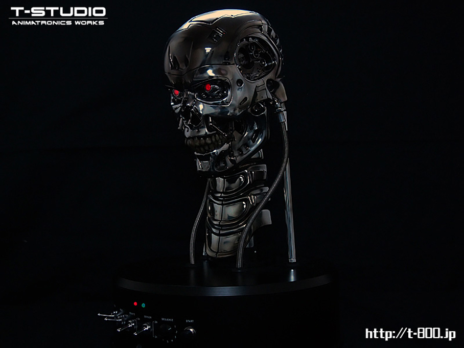 Ceux d’entre vous qui s’intéressent à tout ce qui touche de près ou de loin à l’univers de la licence Terminator vont sans aucun doute s’écrier WAAANT!!! en découvrant ce sublime, ultra réaliste et animé buste du fameux robot T-800 réalisé par les japonais de chez T-Studio.
