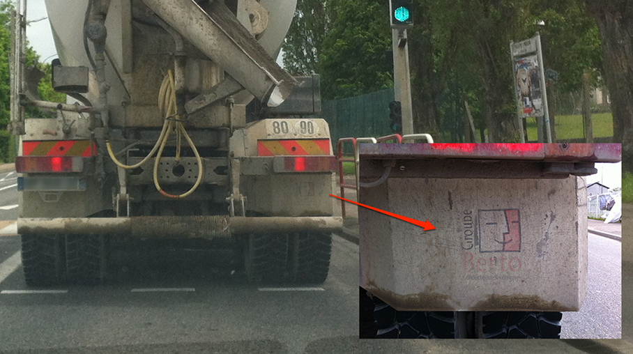Parti au volant de ma voiture acheter pour la milliardième fois un pack de couteuses cartouches d’encre pour alimenter mon insatiable imprimante, je me suis retrouvé à l’arrêt dernière une bétonneuse. Je vous laisse imaginer ma tête lorsque mon regard s’est posé sur l’un des gardes boue de l’imposant camion, garde boue sur lequel on peut voir le logo du Groupe Berto, groupe qui n’a apparemment pas jugé utile de se payer les services d’un graphiste inspiré pour la création de son logo… J’imagine bien la discussion… «Le logo du machin OS d’Apple est cool et tout le monde n’y verra que du feu si on y apporte quelques petite modifications…». Presque tout le monde… ^^
