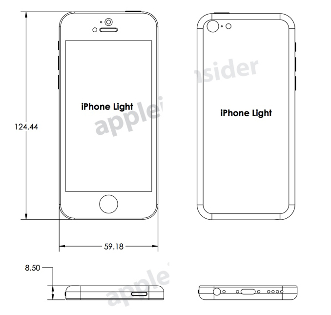 La semaine dernière, l’équipe d’Apple Insider publiait des schémas censés nous dévoiler le gabarit de l’iPhone 5S. Dans la foulée, nos confrères américains ont également révélé les prétendus plans schématiques de celui qu’ils ont au passage baptisé iPhone Light.