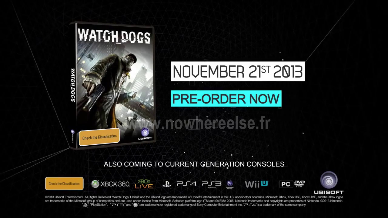 [jwplayer config=îmyplayerî file= »https://www.nowhereelse.fr/video/Date_Sortie_Watch_Dogs.mp4″ image= »http://video.nowhereelse.fr/img/vidlog.jpg »]