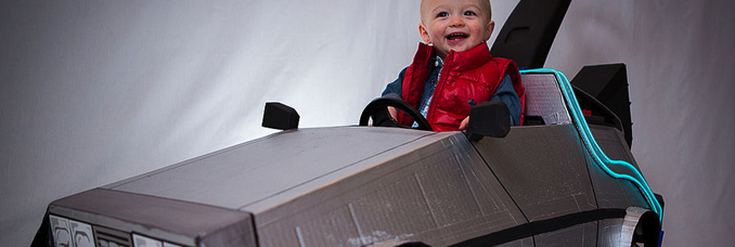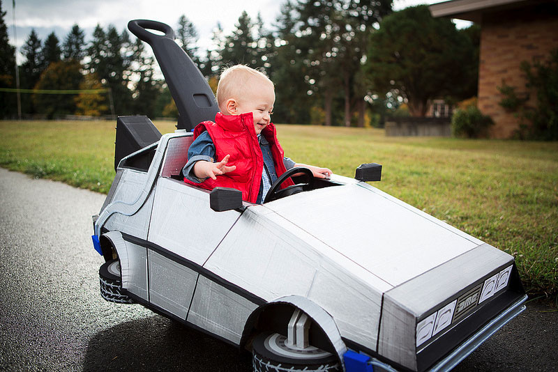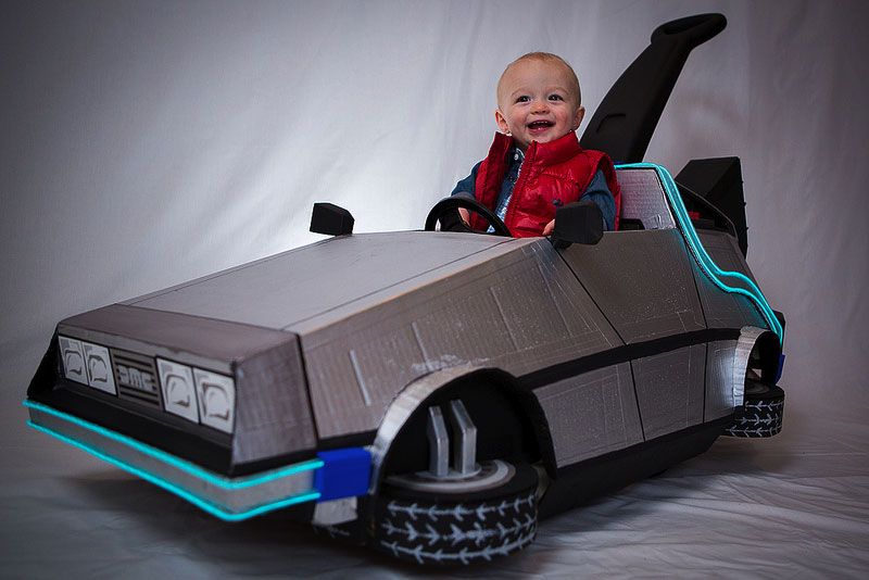 Pour sa première veillée d’Halloween, ce petit bonhomme déguisé en Marty McFly arpentera les trottoirs de son quartier au volant d’une incroyable réplique de la Delorean rendue célèbre par la série des Retour vers le Futur.