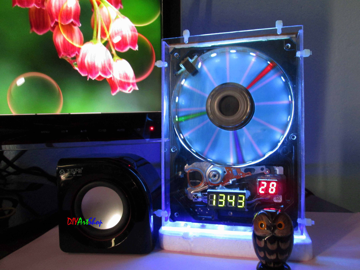Montres, radio-réveils, téléphones mobiles, ordinateurs, fours micro-ondes, cafetières, décodeurs TV, etc…; affichée partout autour de nous, l’heure est omniprésente dans nos vies. Quelle utilité dans ce cas de s’encombrer d’une horloge me direz vous ? Aucune, si ce n’est de décorer votre intérieur avec un objet original tel que ce disque dur de 3.5 pouces transformé en une superbe horloge…