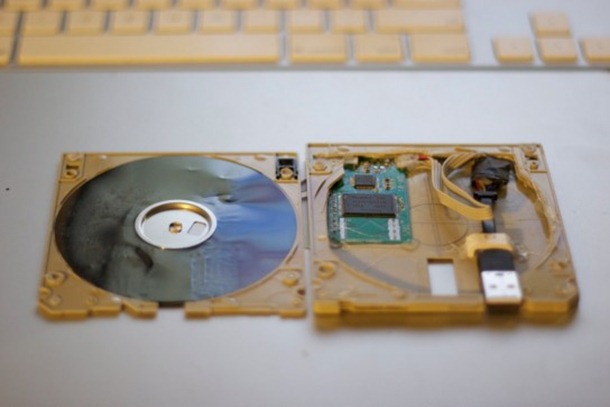 Nous en avons tous deux ou trois qui traînent quelque part au fond d’un carton poussiéreux alors pourquoi pas, tout comme l’a fait Charles Mangin, ressusciter nos bonnes vieilles disquettes 3.5 pouces (floppy disk/FDD) en les transformant en clé USB rétro?… Simple et astucieux, j’adore!