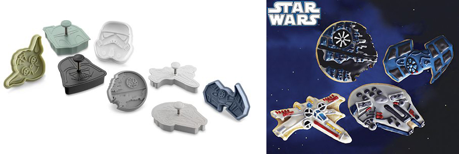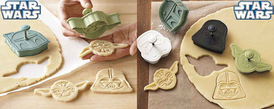 Tête de Yoda, casque de Dark Vador, de StormTrooper ou de Boba Fett, vaisseaux Faucon Millenium, X-Wing, Tie Fighter et même Etoile Noire; avec ce nouveau kit d’emporte-pièces «Star Wars» disponible au tarif de 35$ chez Williams Sonoma vous allez pouvoir mettre un peu du Geek qui sommeille en vous dans vos goûters. Miam Miam!!!