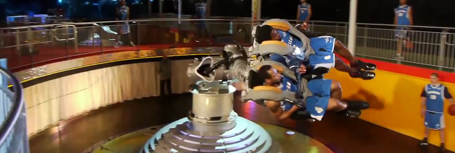 Je dois dire que je suis plutôt dubitatif vis à vis de cette vidéo qui nous présente une nouvelle méthode d’entrainements testée sur les joueurs du Club de Basketball «PB86» (Poitiers Basket 86), méthode qui consiste à secouer les sportifs dans tous les sens à l’aide du bras mécanique géant de l’attraction «Danse avec les Robots» prêté trois fois par semaines au Club par le Futuroscope.