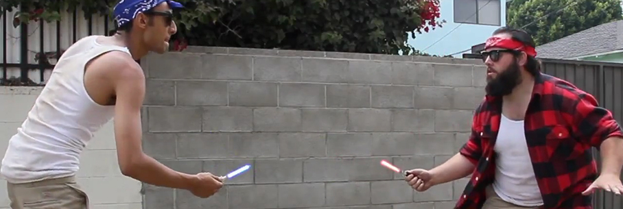 Les membres de deux Gangs rivaux qui s’affrontent dans les rues de Los Angeles à coups de sabres laser et autres armes moins conventionnelles telles que le couteau laser à cran d’arrêt (NEEED!!!), c’est ce que nous proposent Sam Macaroni et ses acolytes dans leur dernière vidéo intitulée «Epic Jedi Gang Fight»…