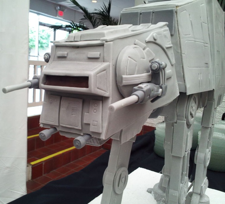 Mesurant pas moins de 60cm de haut, je vous propose aujourd’hui de découvrir un superbe et appétissant gâteau de mariage revêtant les formes d’un AT-AT Imperial Walker confectionné par un certain ChrisTheCook pour célébrer l’union de deux de ses amis qui ont de toute évidence une passion commune pour la Saga Star-Wars… Miam Miam !