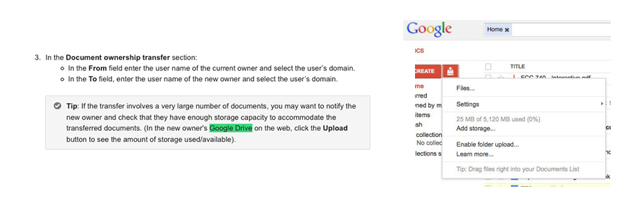 Nouvelle confirmation de la mise à disposition gratuite de 5Go d’espace sur Google Drive, Engadget a publié une capture d’écran de l’interface de Google Docs (ci-dessous à droite) sur laquelle on découvre que la capacité maximale indiquée n’est plus de 1Go (limite gratuite actuelle) mais bien de 5Go. Cette mise à jour serait en cours de déploiement et vous devriez la voir apparaître de votre côté sous peu.