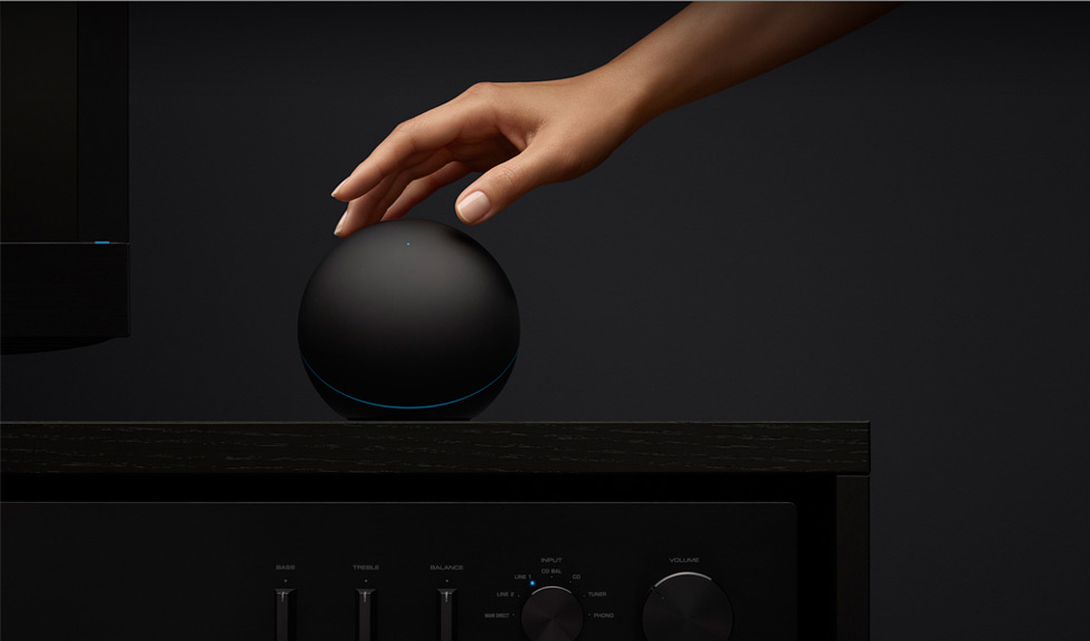 Tournant sous Android 4.0 «Ice Cream Sandwich» cette boule embarque un processeur TI double-cœur ARM Cortex A9 (OMAP4460) couplé avec un processeur graphique SGX540, 1Go de RAM, 16Go de capacité de stockage interne, un amplificateur de 2×12.5W, est équipé d’un port micro-HDMI, d’un port micro-USB, d’un port Ethernet, d’une prise Jack, d’une sortie optique, du Wifi, Bluetooth et de la technologie NFC pour la connectivité sans fil.