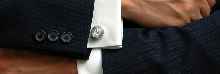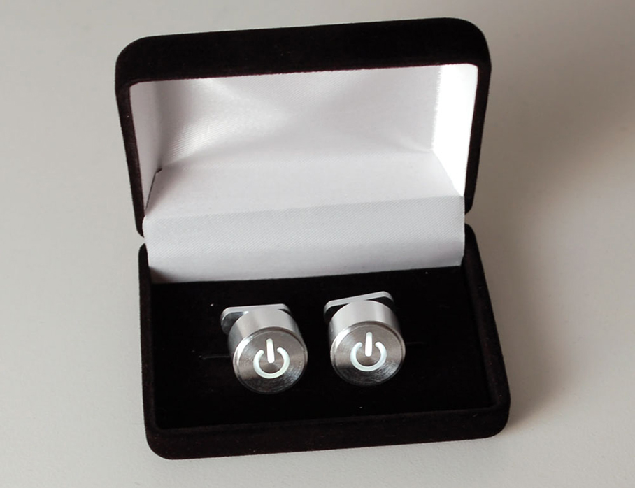 Incrustée sur un petit cylindre en aluminium brossé, l’icône «Power» incrustée sur la face visible de ces boutons de manchettes High-Tech cache une LED qui s’illumine par pulsations à la manière des boutons d’allumages de nos précieux Macbook et iMac.