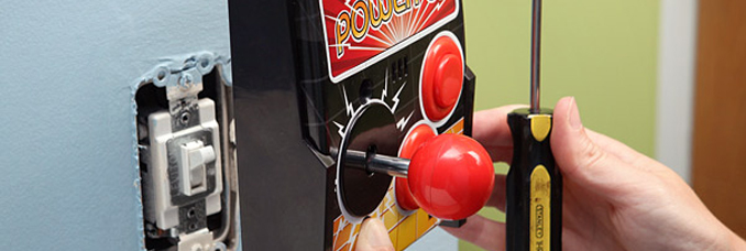 Equipé de deux boutons et d’un stick analogique, ce boitier qui vient se fixer en lieux et places de vos interrupteurs traditionnels émet les sons typiques d’une bonne vieille borne d’arcade. Vous noterez au passage que la partie supérieure de ce boitier s’illumine lorsque les lumières sont éteintes et ce afin de le rendre visible dans l’obscurité. NEEED !!!