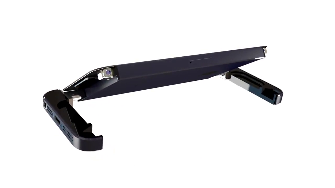 Posé sur une surface plane, l’incroyable iPhone imaginé par Fran_Snk commence par déployer ses extrémités sur lesquelles il s’appuie afin d’incliner son écran. Une fois cette position verrouillée, deux pico-projecteurs intégrés au cadre de l’iPhone font apparaître un clavier virtuel tandis que deux autres se chargent de l’affichage déporté de l’écran du terminal. Sympa mais tellement invraisemblable…