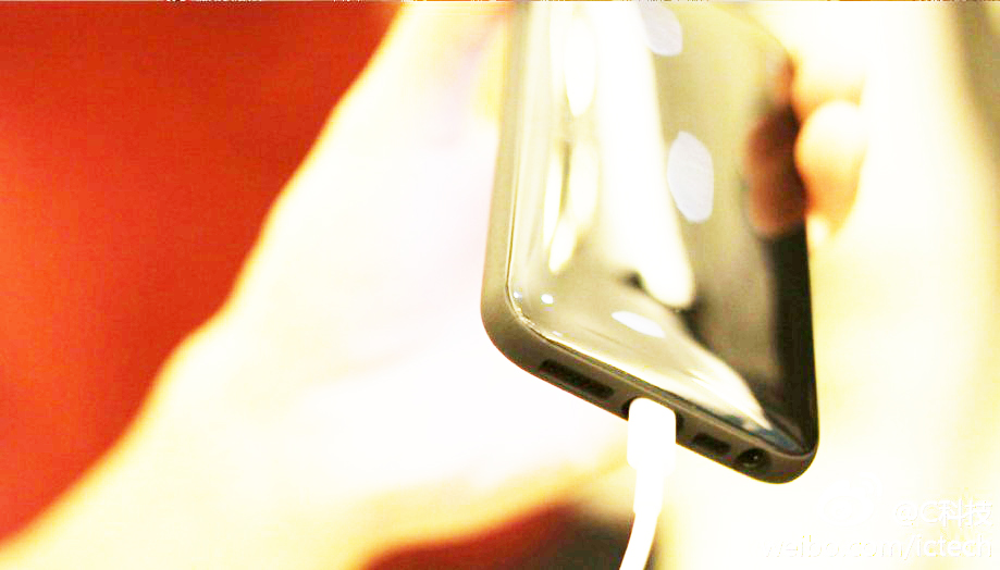 Sur ce cliché, nous découvrons un appareil dont le boitier a tout l’air d’avoir été conçu en matière plastique. Malgré l’absence des informations (provenance, numéros de série, de certification FCC, etc…) habituellement inscrites au dos des smartphones pommés, le câble Lightning connecté à ce prétendu prototype suggère qu’il s’agit bel et bien d’un iPhone…