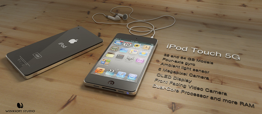 Chez Winksoft Studio ils ont malgré tout imaginé ce à quoi l’iPod Touch 5G pourrait ressembler si Jonathan Ive et ses collaborateurs décidaient finalement de faire évoluer son design et donner des aires d’iPhone 4 au baladeur d’Apple. Estimant pour ma part que le design de l’iPhone 4 est de très loin le plus réussi toutes générations confondues, je vote pour ce restylage de l’iPod Touch!