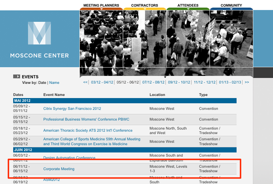 Traditionnellement organisée dans le courant du mois de juin, l’édition 2012 de la conférence WWDC d’Apple pourrait bien se tenir au Moscone Center entre les 11 et 15 juin prochains…
