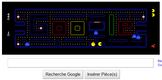 Je ne parle jamais des Doodle, ces images venant parfois de plus en plus fréquemment remplacer le logo Google sur la page d’accueil de Google Search à l’occasion d’évènements et dates importantes. Je vais faire une exception pour ce nouveau Doodle célébrant le 30ème anniversaire du légendaire Pac-Man, Doodle qui n’est autre que le premier niveau de Pac-Man en HTML 5 jouable depuis la Home de Google!