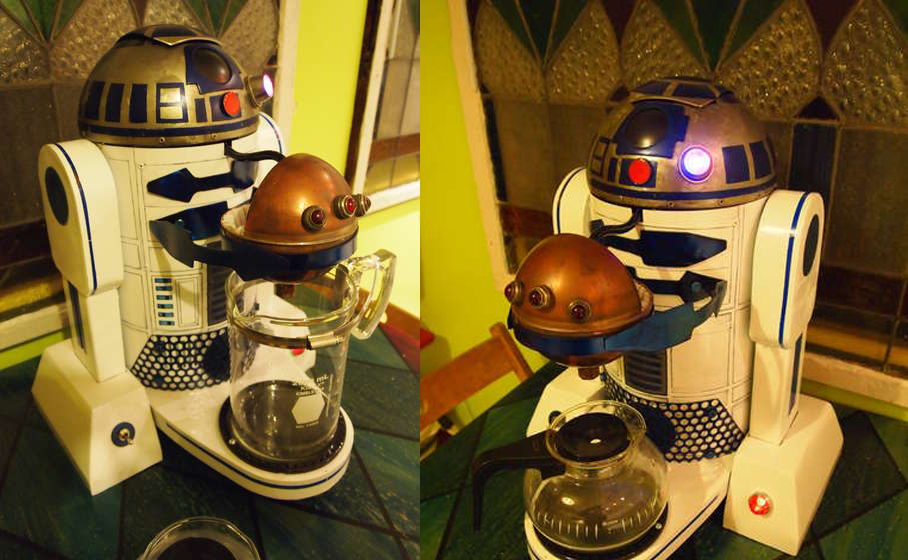 Si au réveil vous êtes tout comme moi incapables de faire le moindre effort avant d’avoir avalé un bon café bien chaud, vous vous êtes sans aucun doute équipé en conséquence. Que votre choix se soit porté sur une machine à café à dosettes souples, à capsules ou sur une authentique cafetière à grains, vous serez sans doute prêt à l’échanger sur le champ contre cette incroyable machine à café reprenant l’allure du robot R2-D2. WAAANT!!!