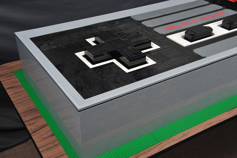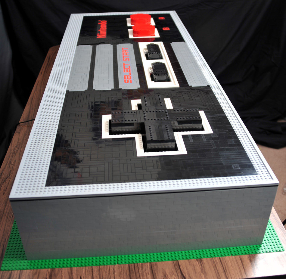Loin d’être le premier modèle du genre (exemples ici et là), l’incroyable manette de jeux Nintendo NES géante et fonctionnelle que je vous propose de découvrir aujourd’hui est à ma connaissance la toute première à avoir été entièrement fabriquée à l’aide de briques de LEGO…