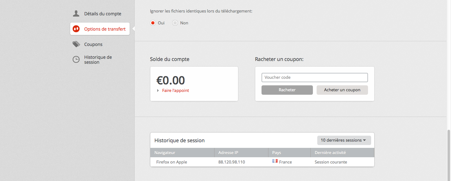 Pour envoyer des fichiers sur votre espace de stockage Mega, il suffit de cliquer sur le lien Nouveau Téléchargement accessible depuis la barre d’outils affichée au dessus de la liste de vos dossiers. Côté sécurité et anonymat des utilisateurs, chaque fichier est crypté à la volée à l’aide d’une clé unique que seul l’uploadeur a en sa possession. Il ne lui reste alors plus qu’à fournir cette clé aux personnes avec lesquelles il désire partager le fichier en question.