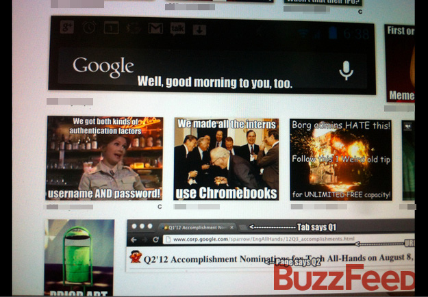 Envoyées à la rédaction de BuzzFeed par un lecteur anonyme accessoirement employé par le géant de Mountain View, les photos qui suivent sont donc censées nous dévoiler l’interface d’un générateur de Mèmes accessible depuis l’Intranet maison appelé Moma.