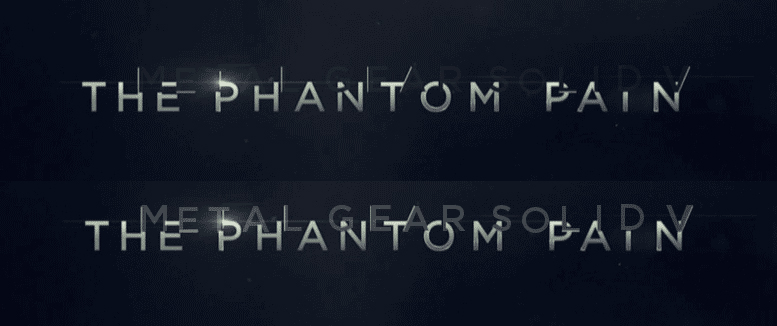 Comme vous pouvez le voir sur l’image ci-dessous, les lettre du texte Metal Gear Solid V se glissent effectivement parfaitement dans les encoches et autres traits visibles sur et autour du titre The Phantom Pain… Simple coïncidence ? J’en doute fort…