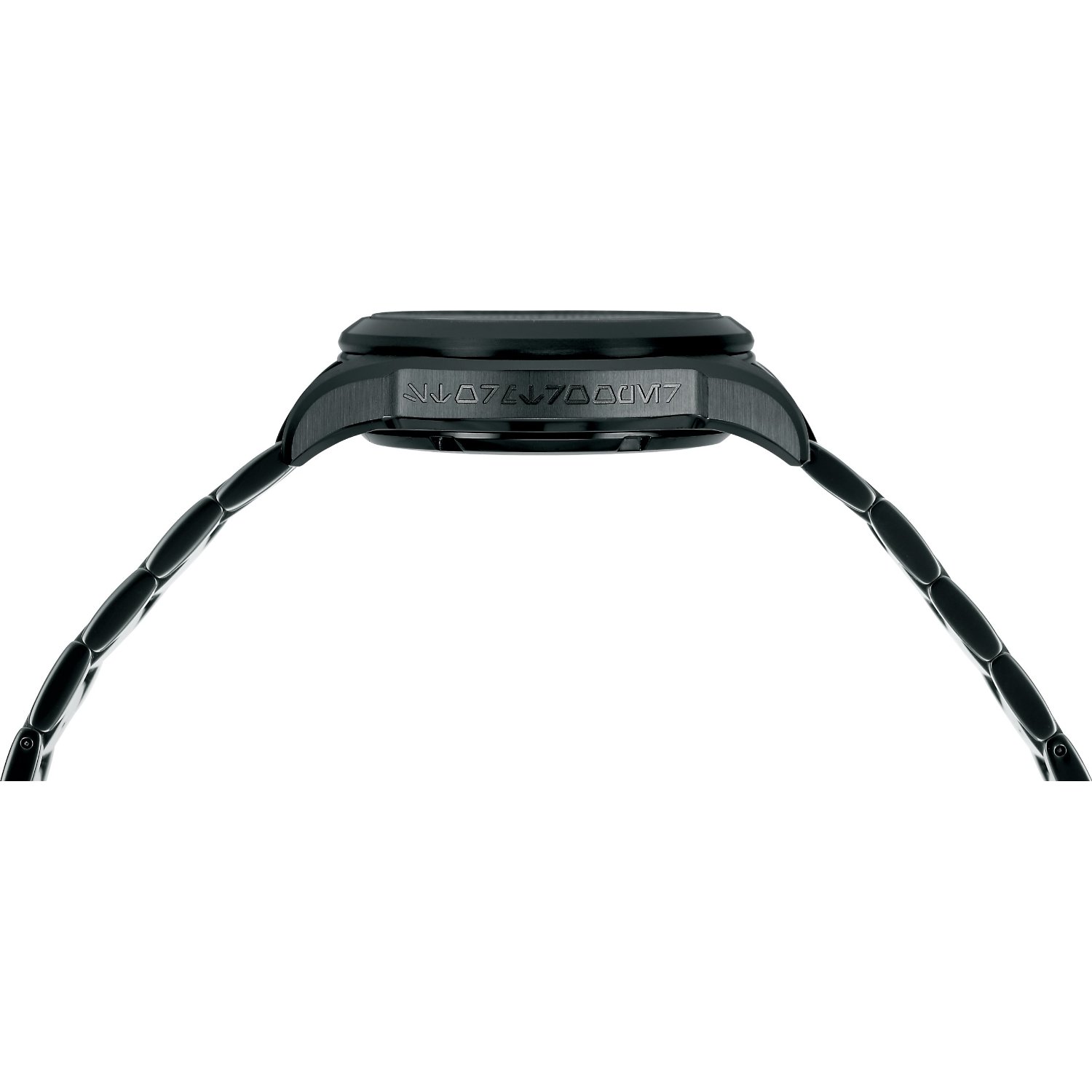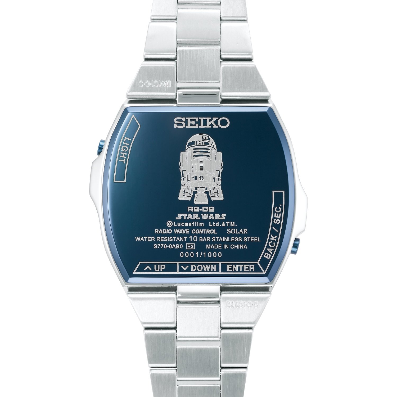 Chaque montre se distingue des autres de par sa couleur, la customisation de son cadran ainsi que par une gravure appliquée sur le côté et le fond de son boîtier. Le modèles R2-D2 se démarque encore plus des cinq autres du fait que contrairement à ces derniers, la montre R2-D2 est équipée d’un écran à affichage digital noir et blanc de 300dpi. Plus classiques, les autres montres sont des modèles analogique à aiguilles.