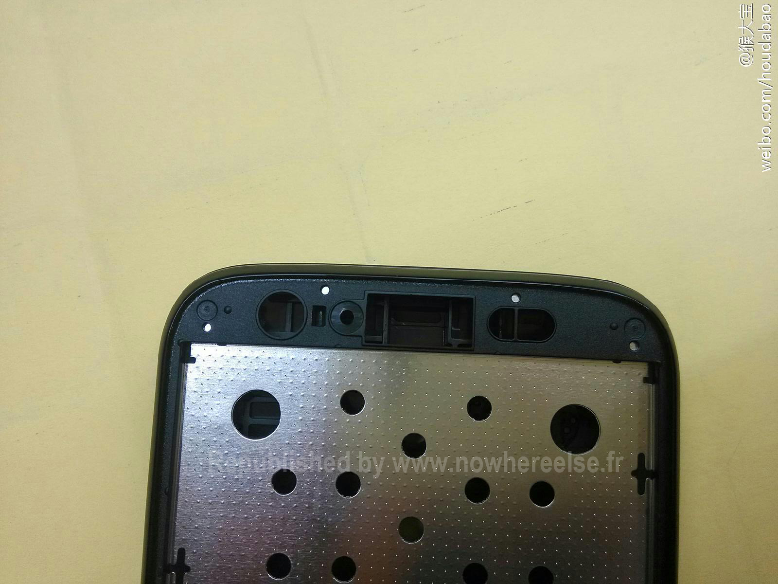 Curieusement et contrairement aux coques colorées dévoilées la semaine dernière, le haut parleur de cette coque est placé à gauche de l’appareil photo numérique et non sur sa droite… Cette version double SIM pourrait donc être une déclinaison réservée à un marché spécifique et dans ce cas très certainement au marché asiatique. A moins qu’il s’agisse en réalité d’un autre modèle…