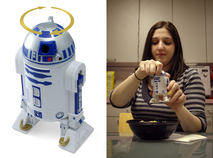 Vous ne le saviez probablement pas mais outre ses multiples fonctions connues de tous, le petit robot R2D2 peut également se rendre utile à l’occasion de vos repas. Besoin d’assaisonner votre viande ou votre salade? Pas de soucis, faites appel au moulin à poivre R2D2 disponible au tarif de 19.99$.