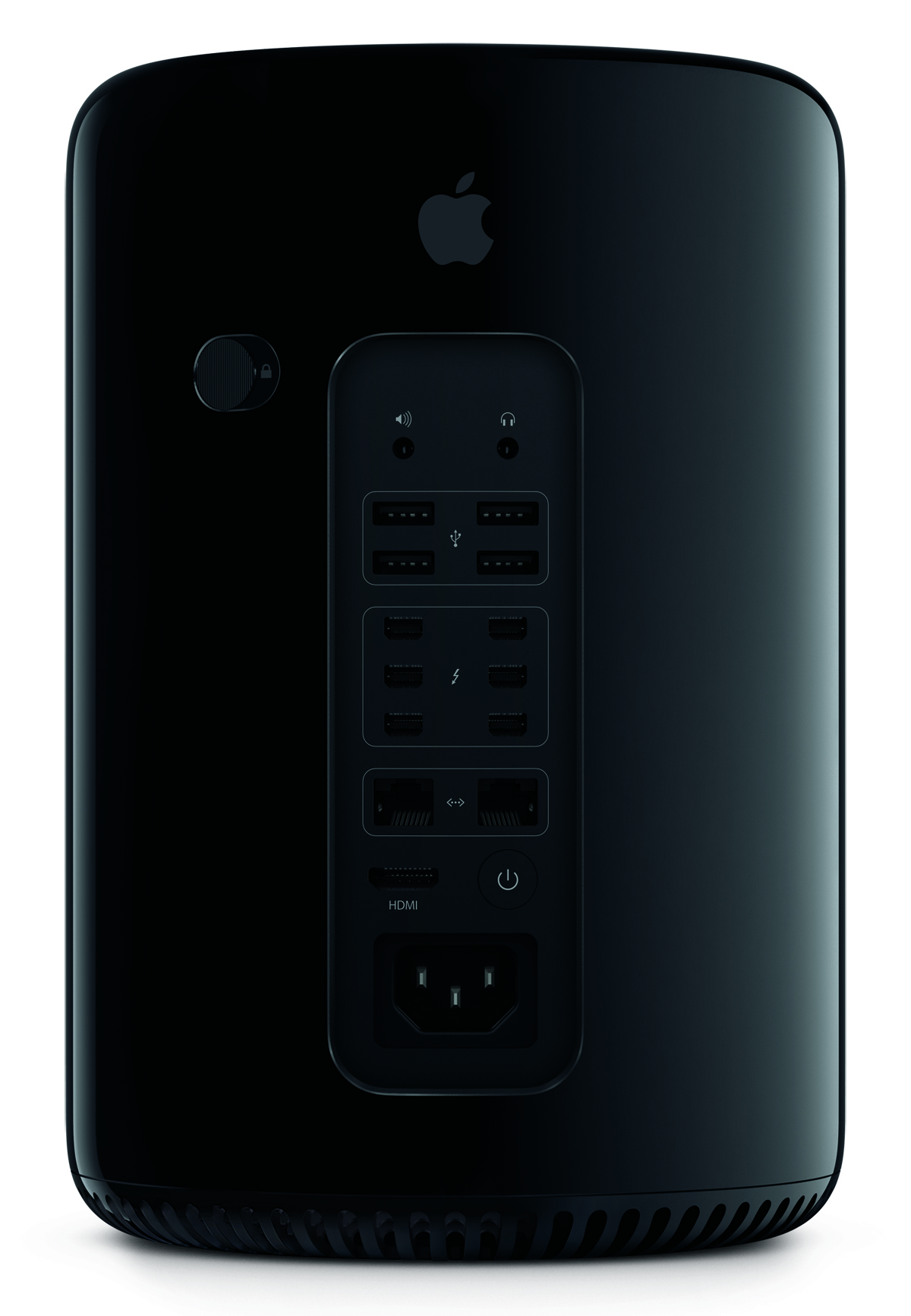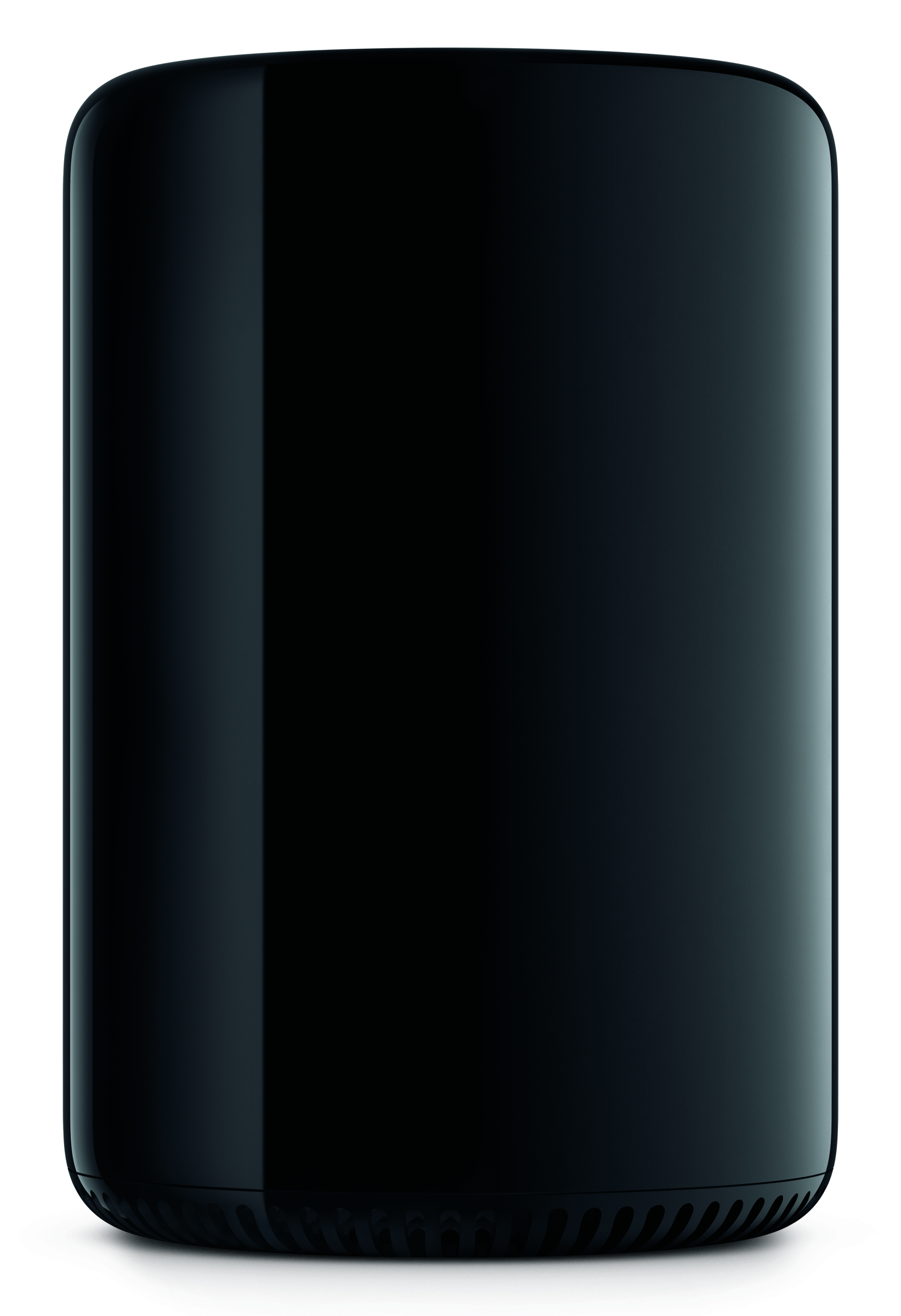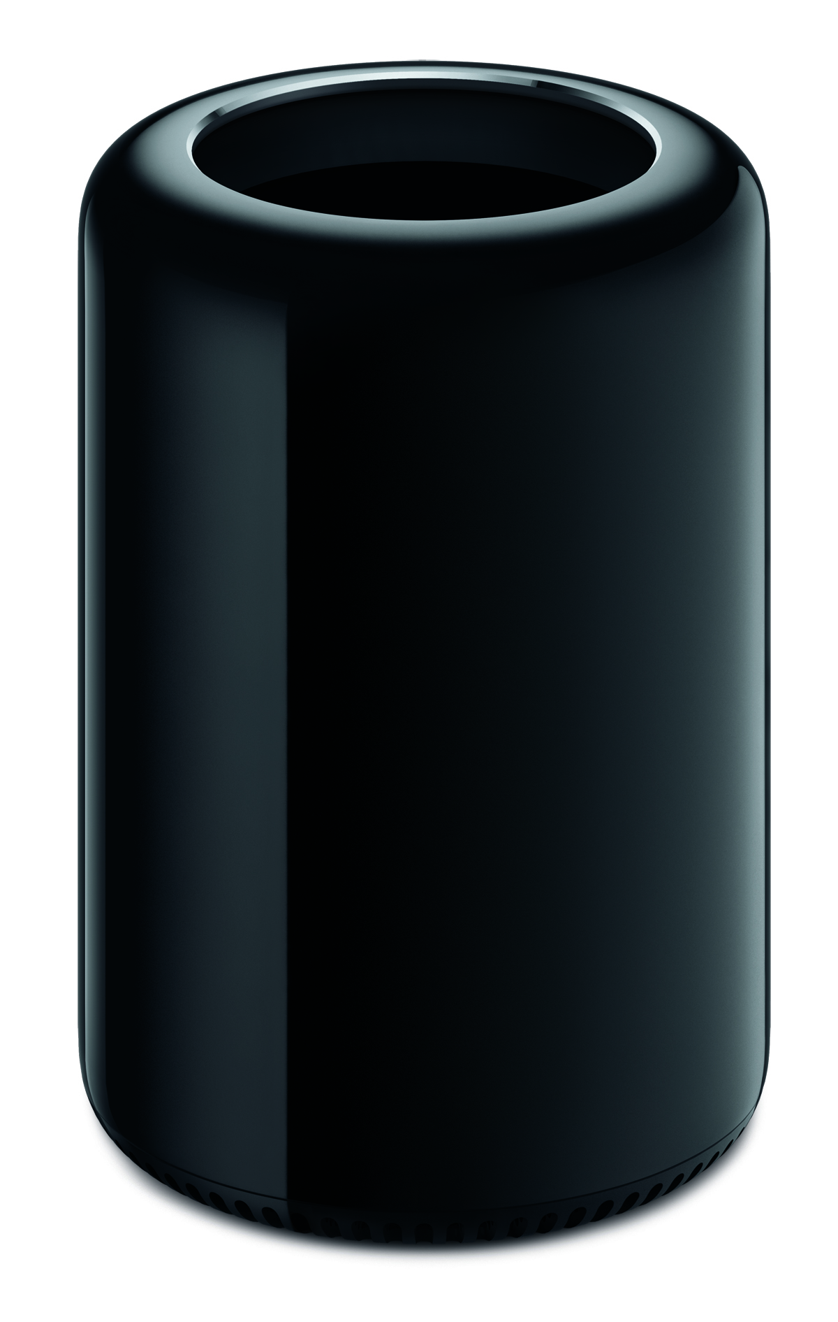 Résultat d’un virage esthétique radical en comparaison avec son superbe prédécesseur, le nouveau Mac Pro se présente sous la forme d’un cylindre noir à la surface brillante. J’ose espérer qu’une déclinaison de couleur blanche (et pourquoi pas grise) sera également proposée.