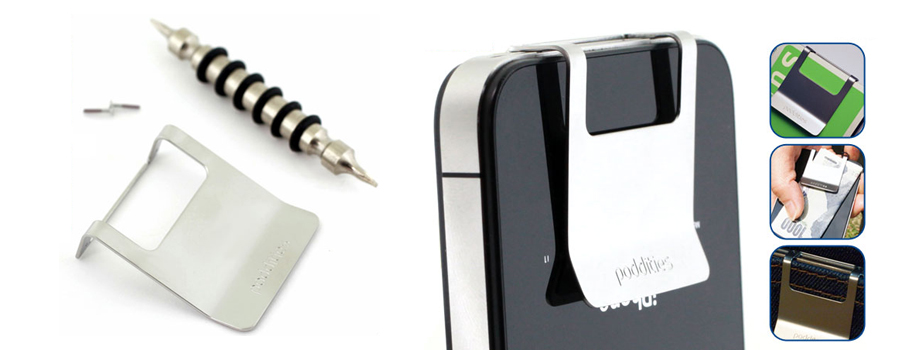 Ce petit accessoire métallique vient tout simplement se visser sur la tranche inférieure de votre iPhone 4 ou 4S. Fixé par les deux vis insérées entre le haut parleur, le micro et le connecteur dock de l’iPhone à l’aide de l’outil fourni avec le kit, le paddities est disponible chez Strapia World au tarif de 32$. NEEED!!!
