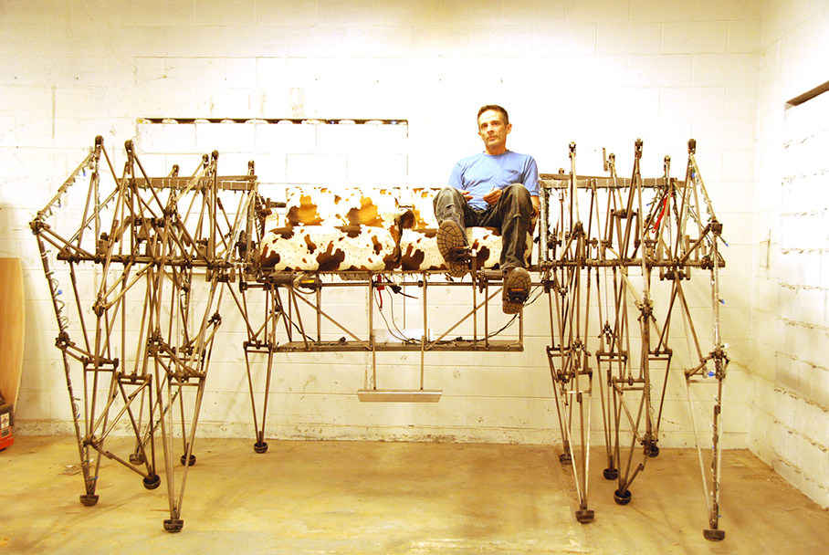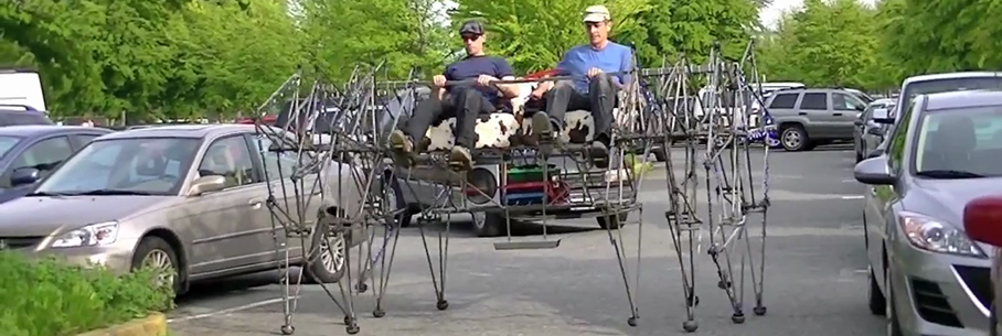 Basé sur le mécanisme imaginé par Theo Jansen, le «Panterragaffe» conçu par l’équipe de MetroDs est un étrange véhicule monté sur 12 pattes métalliques, pouvant embarquer deux personnes à son bords et dont les mouvements sont générés par la force motrice de ses passagers bref il faut pédaler pour avancer. Idéal pour aller faire ses courses en toute discrétion, ou pas…