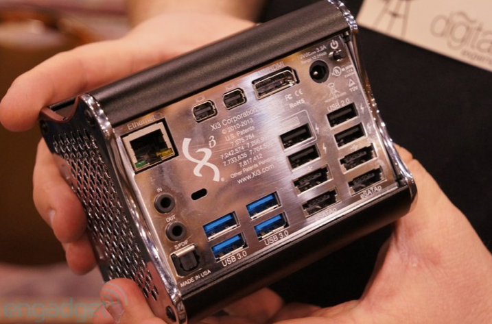 Moins puissante, la deuxième version (X3A) embarque un processeur double-cœur cadencé à 1.65Ghz avec 4Go de RAM DDR3 et 2Mo de cache, une puce graphique ATI HD 7660G et de 32Go à 1To SSD de capacité de stockage interne. Pour la connectique, vous pourrez compter sur une sortie HDMI, un Mini-DisplayPort, quatre ports USB 2.0, deux ports USB 3.0, quatre ports eSATAp 3.0, un port Ethernet et trois ports audio (in et out).