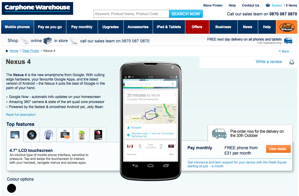 Figurez-vous que le site internet du revendeur Carphone Warehouse vient de lister ce nouveau modèle de la gamme Nexus au sein de son catalogue.