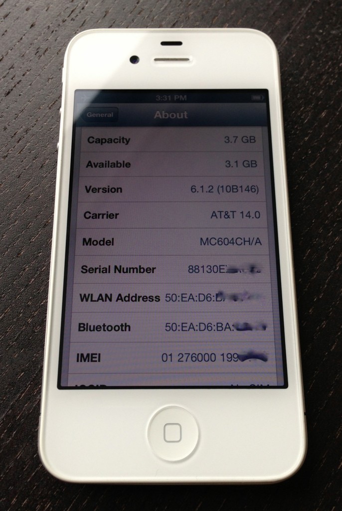 La référence de cet iPhone 4 (MC604CH) sur lequel iOS 6.1.2 a semble-t-il été installé sans problèmes nous indique qu’il s’agit d’un prototype du modèle blanc conçu pour l’opérateur China Unicom.