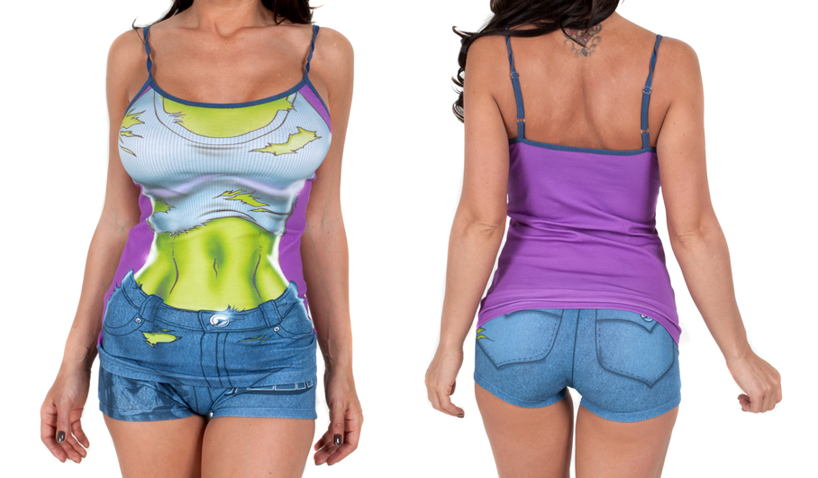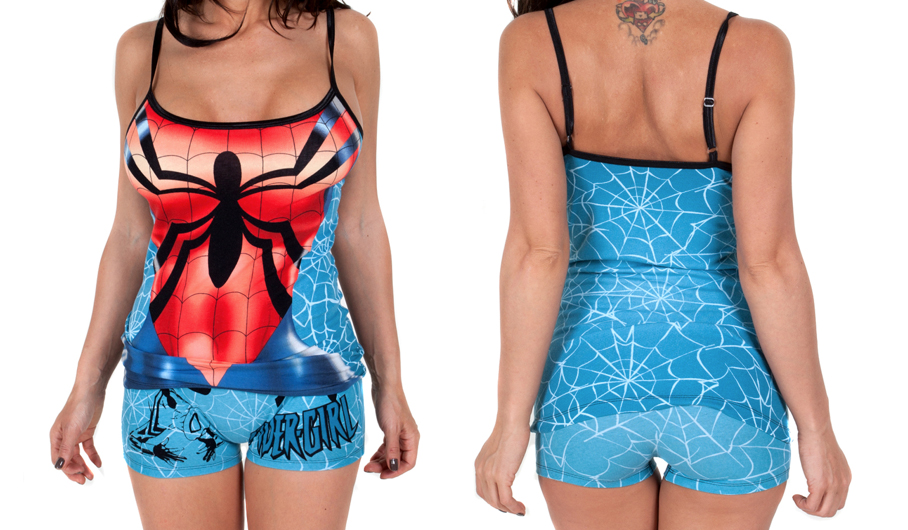 Captain America, Hulk, ou Spiderman au féminin, Emma Frost ou encore Black Widow, vous avez l’embarras du choix parmi ces tenues composées d’un petit top et d’un shorty imprimés. ULTRA GEEXY!!!