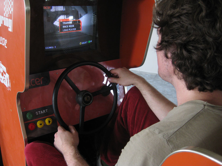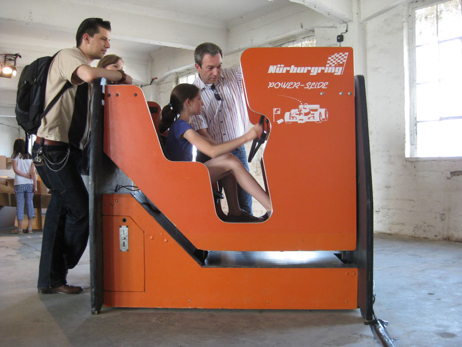 Le petit bolide équipé d’une webcam se commande depuis une cabine de type arcade avec système de balancier permettant de reproduire les mouvements du véhicule.