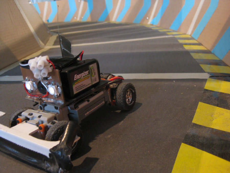 Conçu par Malte Jehmlich et Matthes Mikysec, RACER est une amusante transposition Low-Tech du jeu vidéo WipeOut dans laquelle un petit véhicule télécommandé venant remplacer votre futuriste bolide arpente tant bien que mal le tracé d’une piste entièrement faite d’un assemblage de morceaux de carton.