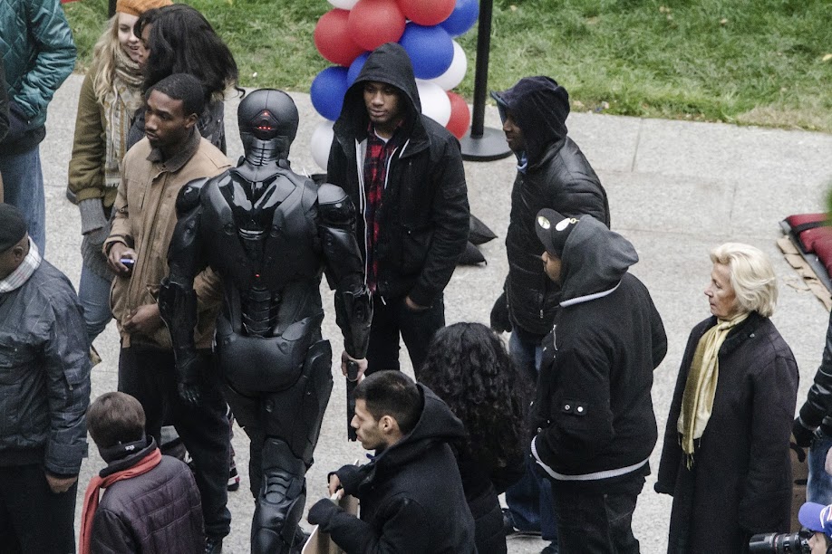 Le mois dernier, nous vous dévoilions les premières photos de la version 2013 du robot policier Robocop, version futuriste imaginée par Mike Jensen dans le cadre de la réalisation du reboot du célèbre long-métrage original signé Paul Verhoeven. Aujourd’hui, je vous propose de découvrir une nouvelle série de photos ainsi que deux vidéos «volées» sur le tournage du remake de Robocop…