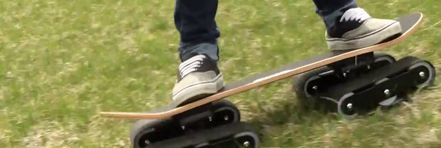 J’en profite pour vous signaler que ce modèle n’est pas le premier du genre. Pour exemple, en avril 2009 nous vous présentions le Scarpar, un skate tout terrain qui avait de plus l’avantage d’être motorisé (cliquez ICI pour découvrir ce skate tout terrain).