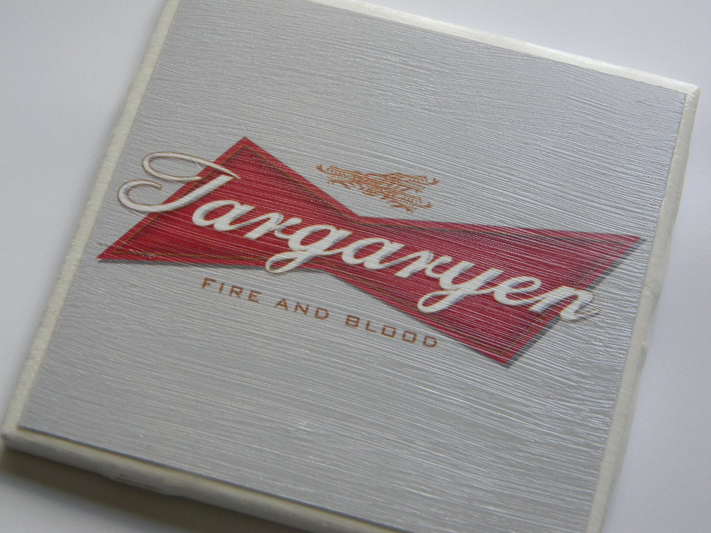 Rien de tel qu’une bonne soirée entre amis devant un épisode de Game of Thrones. Parce que bière bien fraîche et biscuits apéritifs sont les éléments indispensables d’une soirée télé digne de ce nom, Brian Inman a confectionné une série de superbes dessous de verres customisés aux couleurs des Maisons Stark, Targaryen, Lannister, Baratheon et de la Garde de Nuit…
