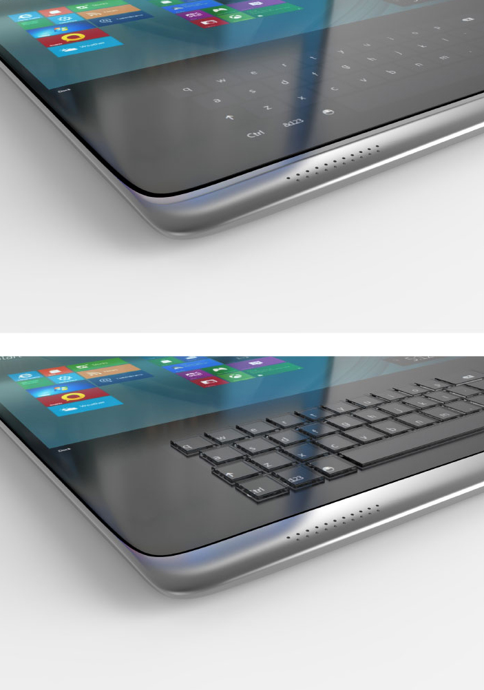 Ainsi, Pandora peut prendre la forme d’une tablette tactile équipée, au choix, d’un écran de 13 pouces au format 4:3 ou de 21.6 pouces au format 16:9 ou encore d’un ordinateur portable de 13 pouces avec clavier tactile ou physique. Ce dernier peut en effet passer d’un état à l’autre grace à une technologie qui vous rappellera sans doute l’incroyable clavier dynamique Tactus que nous vous présentions le mois dernier.