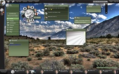 Le bureau se compose d’une barre horizontale se trouvant au sommet de la page et via laquelle vous accèdez de gauche à droite à vos messages, vos discussions, vos contenus (musique, images, mods, blog et favoris), le gestionnaire d’upload, le gestionnaire d’invitations, le panneau Tools (paramétrages, recherche de personnes et feedbacks), et enfin à l’extrème gauche votre player.
