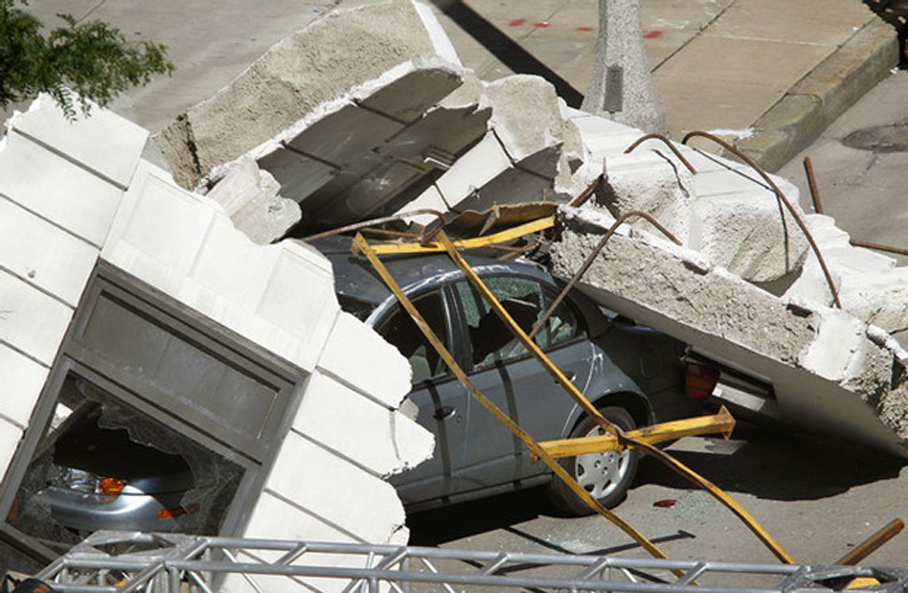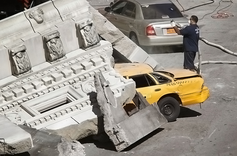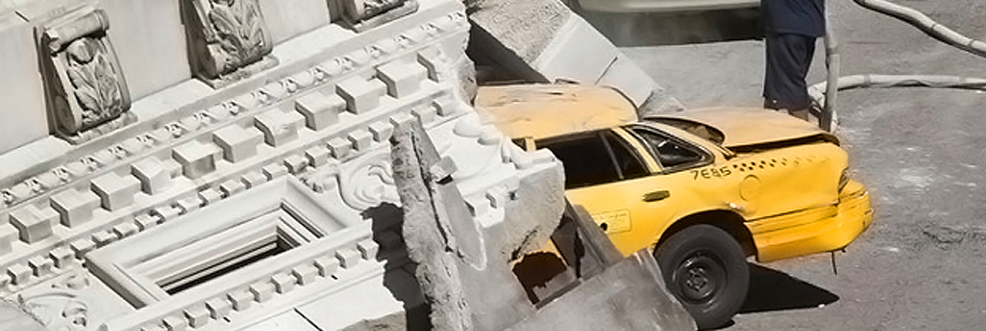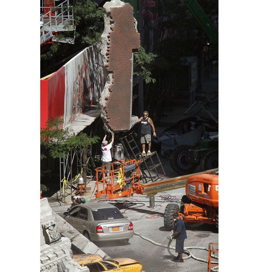 Ces premières photos du tournage ne dévoilent malheureusement pas les acteurs en action, juste des ingrédients incontournables du film de super héros de base : des pans de murs explosés, débris et autres carcasses de voitures !